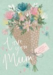 Wens een fijne Moederdag met deze lieve kaart van Greetz. Op deze moederdagkaart staat een bos bloemen en de tekst: Love you mum.