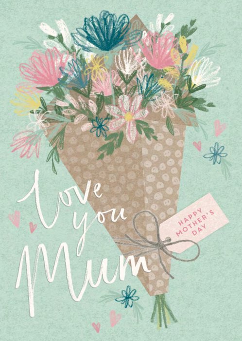 Wens een fijne Moederdag met deze lieve kaart van Greetz. Op deze moederdagkaart staat een bos bloemen en de tekst: Love you mum.