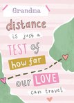 Verras oma met deze lieve kaart op Moederdag. Op de kaart staat: Grandma, distance is just a test of how far our love can travel.