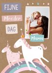 Moederdagkaart met foto en unicorn. Op de kaart staat: Fijne moederdag mama