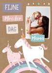 Moederdagkaart met foto en unicorn. Op de kaart staat: Fijne moederdag mama Wenskaart van Greetz ontworpen door Greetz designers, volgens de laatste trends. Voeg je eigen foto('s), tekst, & versiering toe om de kaart extra persoonlijk te maken. Je kunt de kaart toevoegen aan je favorieten of tussentijds opslaan om deze later af te maken. Meer moederdagkaarten zien? Check ze hier.