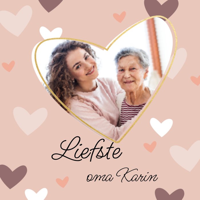 Moederdagkaart van Greetz om iemand mee te verrassen, met hartjes en eigen naam en foto.