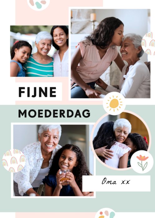 Op deze pastelkleurige Moederdagkaart met foto staat: Fijne Moederdag oma xx