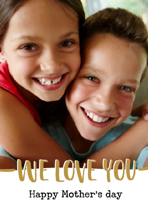 Op deze moederdagkaart met foto staat: We love you. Happy mother's day.
