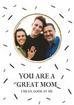 Op deze leuke moederdagkaart staatL You are a great mom. I mean look at me. Ook kun je een foto toevoegen.