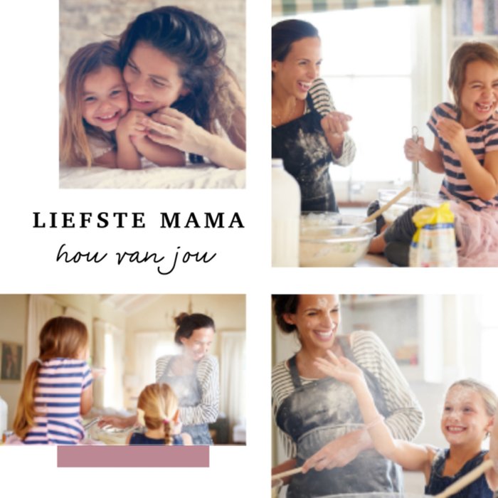 Een mooie strakke fotokaart voor Moederdag. Op de kaart staat geschreven: Liefste mama. Hou van jou mam!