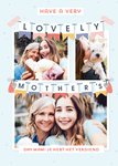 Wenskaart van Greetz ontworpen door Greetz designers, volgens de laatste trends. Voeg je eigen foto('s), tekst, & versiering toe om de kaart extra persoonlijk te maken. Je kunt de kaart toevoegen aan je favorieten of tussentijds opslaan om deze later af te maken. Meer moederdagkaarten zien? Check ze