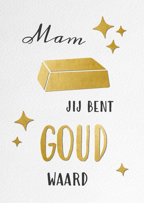 Is jouw moeder goud waard? Verras haar met Moederdag met deze leuke kaart! Op de voorkant staat een goudklompje met gouden sterren.