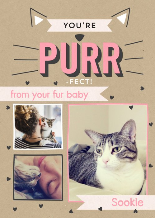 Wens een fijne Moederdag met deze lieve moederdagkaart van Greetz. Op de kaart staat: You're purr-fect. From your fur baby [naam]. Je kunt foto's van je kat erbij doen.