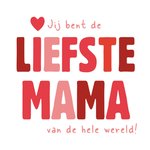 Lieve moederdagkaart met een hartje en de tekst: "Jij bent de liefste mama van de hele wereld!"