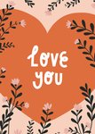 All you need is love en dit lieve kaartje. Dit romantische kaartje wordt gevuld met kleine bloemetjes. In het midden staat een hart met de tekst 'Love you'.