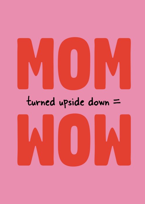 Grappige moederdagkaart met de tekst: "MOM turned upside down = WOW"