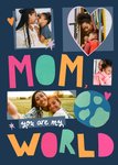 Kleurrijke Moederdagkaart met 4 aanpasbare fotos en de tekst: 'Mom, you are my world.' Verras iemand met deze vrolijke Moederdagkaart van Moonpig.