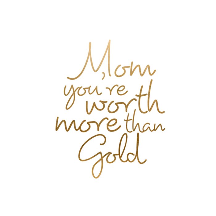 Wil jij je moeder een moederdagkaart geven met een hip design? Op deze kaart staat: 'Mom you're worth more than gold' geschreven.