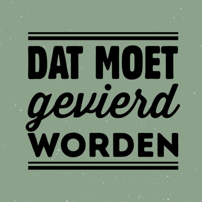 Een feestje hoort er nou eenmaal bij. Op een groene kaart staat: 'Dat moet gevierd worden'.