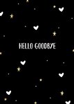 Wenskaart om zomaar te sturen, met trendy patroon van sterren, hartjes en de tekst: Hello goodbye..