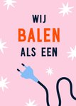 Ken je iemand die een nieuwe job heeft? Stuur dan deze leuke nieuwe baan kaart van Greetz! Op de kaart staat een stekker en de tekst: Wij balen als een.