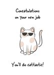 Leuke wenskaart met illustratie van een kat en de tekst: Concatulations on your new job. You'll do cattastic!