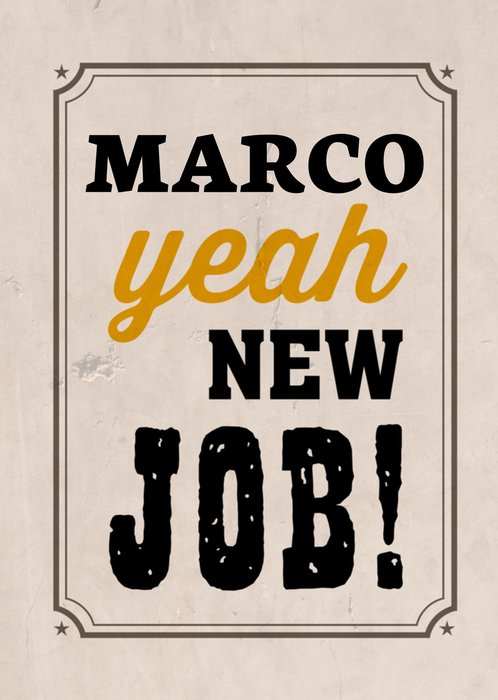 Wenskaart van Greetz ontworpen door Greetz designers, volgens de laatste trends. Voeg je eigen foto('s), tekst, & versiering toe om de kaart extra persoonlijk te maken. Je kunt de kaart toevoegen aan je favorieten of tussentijds opslaan om deze later af te maken. Meer nieuwe baan kaarten zien? Check ze
