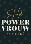 Stoere wenskaart van Greetz om iemand succes te wensen. Op de voorkant staat een tekst met: Hé powervrouw succes!