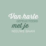 Een leuke nieuwe baan kaart met de tekst: Van harte gefeliciteerd met je nieuwe baan.