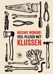 Leuke nieuwe woning kaart met gereedschap en de tekst: Nieuwe woning! Veel plezier met klussen