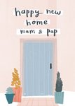 Een nieuwe woning kopen of huren is altijd een nieuw avontuur. Stuur deze kaart naar iemand met een nieuwe woning. Op de kaart staat een deur en de tekst: Happy new home mam & pap.