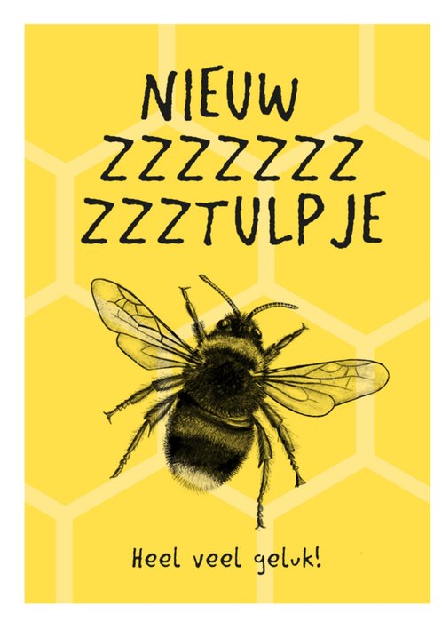 Leuke kaart met illustratie en de tekst: Nieuw zzzzzztulpje heel veel geluk!