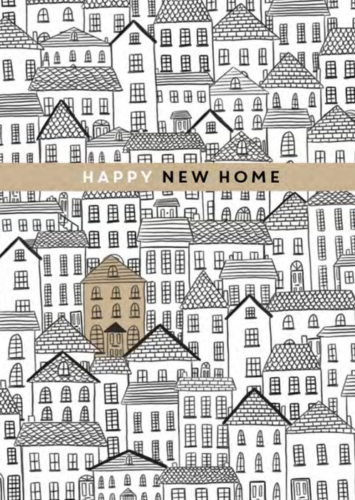 Grappige kaart met huisjes en de tekst: Happy new home