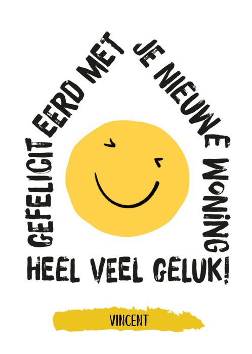 Leuke nieuwe woning kaart met smiley en aanpasbare naam.