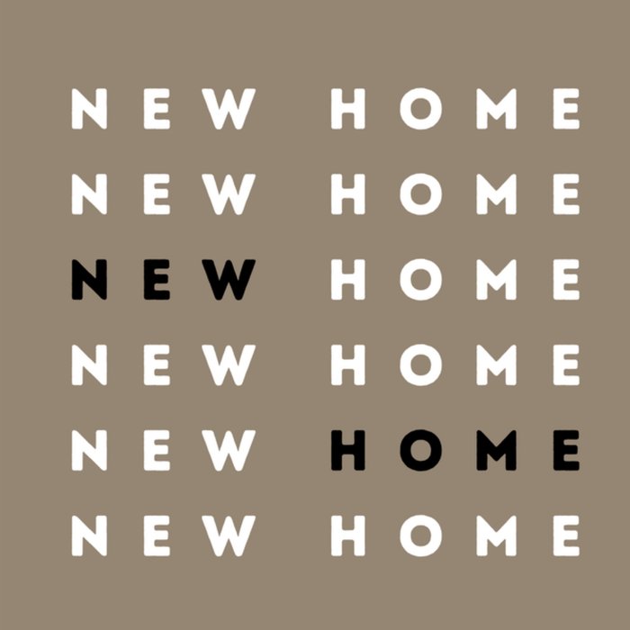 Leuke nieuwe woning kaart met zes keer de tekst: New home