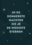 Wens je vrienden en familie een gelukkig nieuwjaar toe met deze schattige nieuwjaarskaart met de tekst: In de donkerste nachten zie je de mooiste sterren.