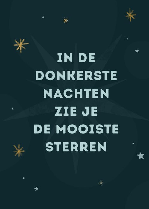 Wens je vrienden en familie een gelukkig nieuwjaar toe met deze schattige nieuwjaarskaart met de tekst: In de donkerste nachten zie je de mooiste sterren.
