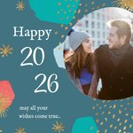 Wens vrienden en familie een gelukkig nieuwjaar en de beste wensen met deze sprankelende nieuwjaarskaart. "20.. May all your wishes come true.." Voeg ook een foto toe om jouw persoonlijke nieuwjaarskaart te maken.