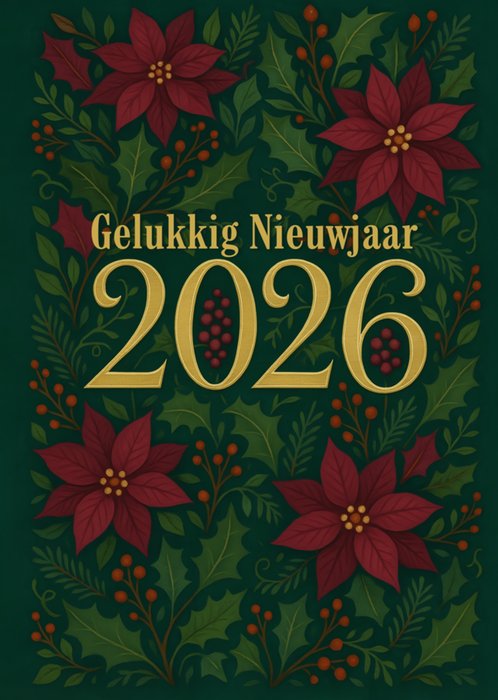 Verras met deze fleurige nieuwjaarskaart. De kaart is niet aanpasbaar.