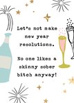 Wens je vrienden en familie een gelukkig nieuwjaar toe met deze nieuwjaarskaart met de tekst: Let's not make new year resolutions. No one likes a skinny sober bitch anyway!