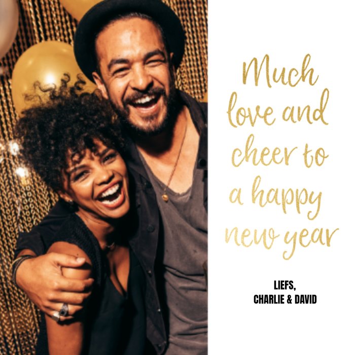 Proost op het nieuwe jaar met deze leuke nieuwjaarskaart van Greetz. Voeg een leuke foto toe en jullie naam. Ook staat er de tekst: Much love and cheer to a happy new year!