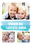 Collage kaart met de mogelijkheid om drie eigen foto's toe te voegen en de tekst op de kaart is aanpasbaar.