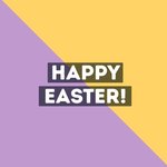 Happy Easter! De tekst zegt het al: wens iedereen een vrolijk Pasen met dit vrolijke kaartje. De voorkant is paars met geel en de tekst Happy Easter! staat hieroverheen gedrukt. Een fris en hip design!
