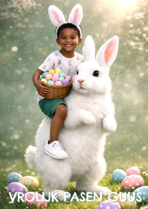 Verras met deze vrolijke Paaskaart. De naam en foto zijn aanpasbaar.