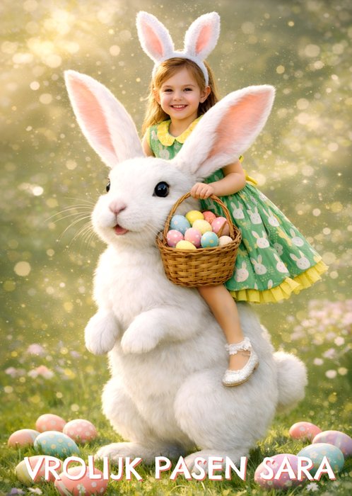 Verras met deze schattige paaskaart. De naam en foto zijn aanpasbaar.