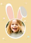 Voeg één van je leukste foto's toe en verras de ontvanger van deze leuke wenskaart met een gepersonaliseerde paashaas! Met de vrolijke pastelkleuren is het design helemaal in de paasstijl.