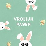 Vroljke paaskaart met haasjes en de tekst: Vrolijk pasen