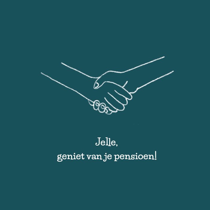 Feliciteer de harde werker met zijn welverdiende pensioen. Op het kaartje staat een handdruk getekend met naam en de tekst: "geniet van je pensioen!"