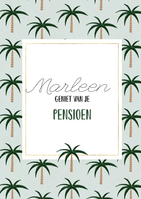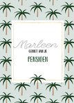 Genieten van je pensioen doe je natuurlijk omringt door palmbomen. De naam op de kaart is aanpasbaar.