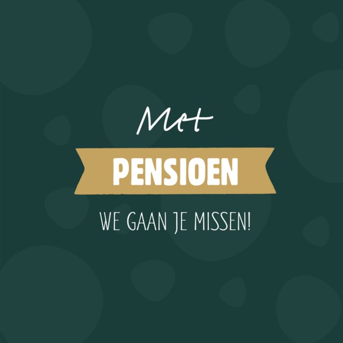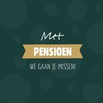 Leuke pensioen kaart met de tekst: Met pensioen, we gaan je missen!