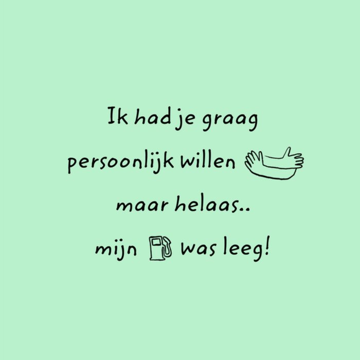 Leuke wenskaart met de tekst: Ik had je graag persoonlijk willen knuffelen maar helaas.. mijn tank was leeg!