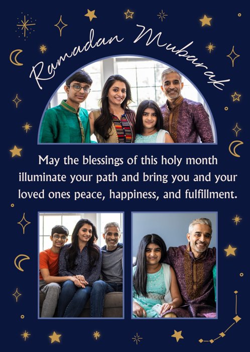 Verras iemand met deze vrolijke Ramadan Mubarak kaart. De tekst en foto zijn aanpasbaar.