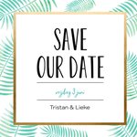 Deze kaart heeft een leuke jungle-thema frame. Ook kun je de datum van jullie huwelijksfesst toevoegen en jullie naam aan de voorkant van de uitnodiging.