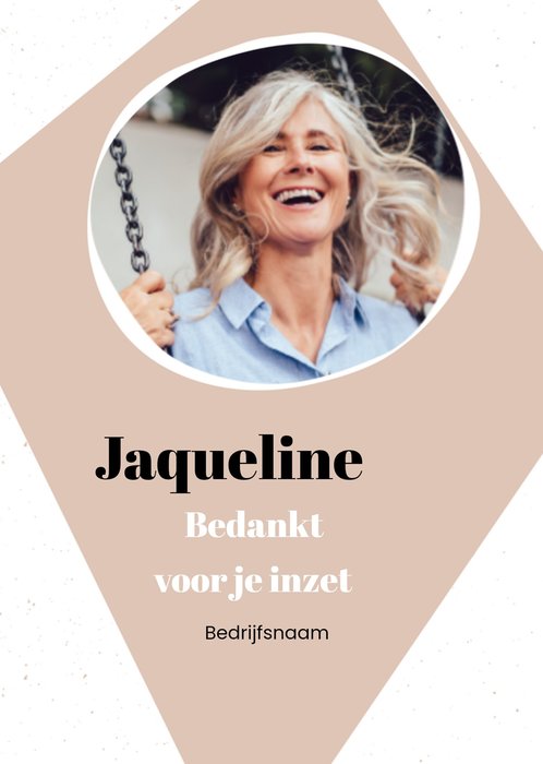 Secretaresse kaart waar je een foto aan kunt toevoegen. De achtegrond is bruin. Ook staat er de tekst: bedankt voor je inzet.